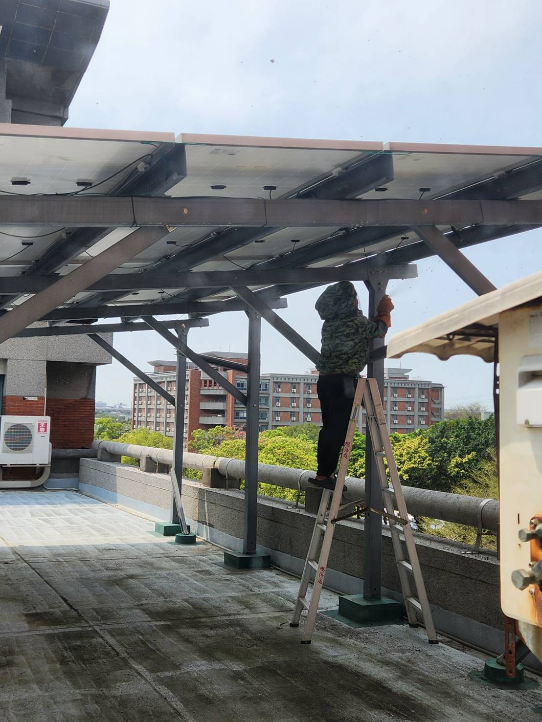 昨日接獲通報行政樓有蜂群聚集,本處已立即通報捕蜂大隊進校處理,並已於中午前全面清除完畢。